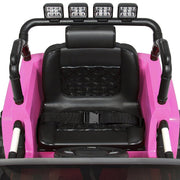 The 12V Battery Powered Jeep Toddler Ride On Toy with Remote Control and Lights Nothing’s better than cruising in your truck, the sun shining down, and a juice box in hand. Start ‘em young and add another car to your garage with this rc ride on truck, complete with in-car and remote-control steering. Adventure awaits: get some grass in the treads of those traction wheels and conquer your backyard with a spring suspension system. Our trucks are built large, scaled small, for your little one’s biggest adventures. Product Features: Perfect for 1 child, ages 3-8 years old Can be operated by foot pedal and steering wheel or by remote controller 14” traction wheels equipped with a spring suspension system Non-toxic plastic body Adjustable seatbelt for added safety Gear shift for a realistic driving experience Magnetic doors for easy access LED lights for a stylish look 3 speed options with a 12V motor: high, medium, and low speeds Dual option music: built-in musical tunes or radio, or plug in your own playlist with the included AUX cord Includes AC charger and rechargeable 12V 7Ah batteries Controller requires (2) AAA batteries (not included) Conforms to ASTM F963-16 standards Product Specifications: Color: Pink Dimensions: 45”(L) x 31”(W) x 31”(H) Weight Capacity: 65 lbs Character Family: Battery Powered Jeep Brand: Best Choice Recommended Age Range: 3-8 Years Theme: Trucks Additional Specifications: Overall Dimensions: 45”(L) x 31”(W) x 31”(H) Seat Dimensions: 15.5”(L) x 7.5”(W) Wheel Diameter: 14” Weight: 45 lbs Material: ABS Plastic Included Battery: Rechargeable 12V 7Ah Controller Battery: (2) 1.5 AAA Charging Time: 8-12 hrs Run Time: 1-2 hrs Max Speed: 3.7 MPH Frequency: 2.4GHz Volts: 110-120V Assembly required (with manual) Shop now and let your child embark on exciting adventures with The 12V Battery Powered Jeep Toddler Ride On Toy with Remote Control and Lights. With its fun exterior features, including magnetic doors and LED lights, and a spring suspension system for a smooth ride, this ride-on truck will provide endless entertainment for your little one. Whether they choose to drive it themselves using the foot pedal and steering wheel or you take control with the remote controller, the possibilities for fun are endless. The 12V motor offers high, medium, and low speeds, allowing your child to choose the perfect pace for their adventure. They can also enjoy a sing-along with the built-in musical tunes or radio, or plug in their own playlist using the included AUX cord. Safety is a top priority with an adjustable seatbelt and a non-toxic plastic body. The rechargeable 12V 7Ah batteries ensure long-lasting playtime, and the AC charger makes it easy to keep the battery charged. Get ready for thrilling rides and unforgettable memories with The 12V Battery Powered Jeep Toddler Ride On Toy with Remote Control and Lights.