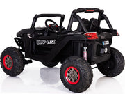 The 12v Black Mini Moto UTV 4x4 with Remote Control (2.4ghz RC) is the ultimate ride-on toy for adventurous kids. Whether they prefer manual driving or using the remote control, this Mini Moto UTV guarantees a thrilling and stylish experience. With its sleek design and impressive features, it's no wonder that every kid in the neighborhood will want to join the fun. Key Features: Double Doors for easy access 4 Wheel Drive with 4 powerful motors 2.4ghz Remote Control for convenient operation EVA Tires for a smooth and comfortable ride Leather Seat for added comfort and style Bluetooth and SD Card with MP3 Port for playing favorite tunes Seat Belt for safety during the adventure Rear Trunk for storing toys and supplies 4 Wheel Suspension for a stable and enjoyable ride Working Front and Rear Lights for a realistic experience Product Specifications: Brand: Mini Moto Year: 2022 Theme: Cars Recommended Age Range: 3-6 Years old Age Level: 3-4 Years Character Family: UTV-MX Motor(s): 4 x 12 Volt 35 Watt (4 Wheel Drive) Battery: 2 x 12 Volt 7 AMP Rechargeable Battery (12v/14ah total) Charger: Included Suspension: 4 Wheel Spring Sounds: Bluetooth, MP3 Port Driving: Manual Drive or Remote Control Doors Open: Yes Lights: Yes Seats: Leather Tires: EVA Forward Speed: 5 MPH Reverse Speed: 2.5 MPH Suggested Max Weight: 88 lbs Suggested Age: 3-6 years old Throttle Type: Foot Pedal Braking System: Releasing the throttle allows the UTV to stop quickly Material of Body: ABS Plastic Assembled Dimensions: 51x32x29 inches Box Dimensions: 49x37x17 inches Product Weight: [product_weight] lbs Box Weight: 76 lbs With a weight capacity of up to 88 lbs and a suggested age range of 3-6 years old, this Mini Moto UTV is perfect for young adventurers. The foot pedal throttle allows for easy control, while the reliable braking system ensures quick stops when needed. The ABS plastic body guarantees durability and long-lasting fun. Whether they're cruising around the neighborhood, exploring the backyard, or embarking on exciting imaginary adventures, kids will enjoy every moment in this Mini Moto UTV 4x4. It's time to let their imagination run wild and create unforgettable childhood memories.