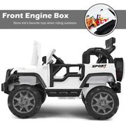The 12V Electric Kids Ride On Jeep Car with Remote Control - Perfect for Little Adventurers! is designed to provide endless fun and excitement for your little ones. With its sleek and stylish design, this ride-on car is perfect for kids who love adventure and exploration. Whether they want to go on a thrilling off-road adventure or simply cruise around the neighborhood, this rc ride on car is sure to provide hours of entertainment.Key Features:- 2 wide seats: This ride-on car can accommodate 2 kids at a time, allowing them to share the driving fun together.- Shock absorber spring: The ride-on car is equipped with a shock absorber spring to minimize the shock feeling and ensure a smooth driving experience.- Soft start and stop: The soft start and stop feature protects kids from any danger caused by excessive speed, ensuring their safety while they enjoy their ride.- 2.4G remote control: The ride-on car comes with a 2.4G remote control that allows parents to control the moving direction and choose from 3 variable modes, giving them peace of mind and control over their child's ride.- Ample storage space: The ride-on car features a back storage box and a front engine that provide ample storage space for toys and other belongings when kids go outside to play.Product Specifications:- Brand: Topbuy- Material: PP+ Iron- Voltage: 12V- Seats: 2- Remote Control: 2.4G- Speed: 3-5 km/h- Charging Time: 8-12 hours- Run Time: 1-2 hours- Weight Capacity: 66 lbs- Recommended Age: 3-8 years oldWith its impressive features and specifications, the 12V Electric Kids Ride On Jeep Car with Remote Control is the perfect choice for little adventurers. Let their imaginations run wild as they embark on exciting journeys with this ride-on car. Order yours today and watch as your kids create unforgettable memories of fun and adventure.