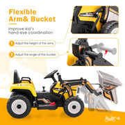 12V Electric Ride-On Excavator Digger Tractor with RC Control and Digging Bucket - Yellow