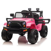 The 12V Electric Ride On Jeep Toy Car for Kids with Remote Control is the perfect gift for US children who love adventure and excitement. This ride-on car is designed with a wider seat and adjustable seat belts to ensure the safety and comfort of your little ones. Made with high-quality PP plastic and a tough metal frame, this car is built to withstand years of playtime fun.This rc ride on toy is packed with features that will make your child feel like they're driving a real car. It comes equipped with an electronic horn, LED lights, and even an FM radio with MP3 input, providing a full hot-rod experience. Whether your child wants to cruise around the neighborhood or listen to their favorite tunes, this ride-on car has it all.Parents have the option to let their child drive manually or use the 2.4G remote control to safely guide them when necessary. The remote control has 3 different speed modes and a parking mode, giving parents full control over the car's movements. With forward and reverse functionality, your child can explore in any direction they choose.Specifications:- Color: Pink- Material: PP Plastic, Metal- RC Mode: 3 Speeds Options- Manual Mode: 2 Speeds Accessible- Max User Weight: 62 Lbs (28kg)- Max Speed: 2.8 mph- Charge Time: 8-12 Hrs.- Run Time: 1-2 Hrs.- Battery Type: 12V- Controller Battery: 2 x AAA Batteries (not included)- Dimensions: 38.7"(L) x 25.9"(W) x 25.6"(H)- Recommended for Ages: 3-5 yearsWith its stylish design and exciting features, the 12V Electric Ride On Jeep Toy Car for Kids with Remote Control is sure to provide endless hours of fun and adventure for your little ones. Get ready for a ride-on experience like no other!