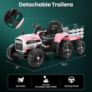 12V Electric Ride-On Tractor for Kids with Trailer Attachment
