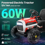 12V Electric Tractor Ride-On Toy Car with Trailer for Kids - Battery Powered