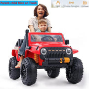 The 12V Jeep Music Fashion Electric Ride-On Car with Remote Control and LED Lights is the perfect ride-on toy for your little adventurers. This rc ride on truck is designed to provide endless fun and excitement for your kids. Let's dive into the amazing features and specifications of this incredible ride-on car.Key Features:- 2 Seater Ride-On Truck: This ride-on car has two seats, allowing two little kids to play together and create lasting memories. The seats are equipped with seatbelts to ensure a safe and smooth ride for your children.- Long-Lasting Battery: Powered by a 12V 10AH battery and driven by four wheels, this ride-on car offers a long-lasting and thrilling driving experience for your kids.- Remote Control Function: The ride-on truck comes with a remote control, allowing parents to override the little driver and safely guide their kids when necessary. It's easy to start with just one switch, giving children the freedom to drive around themselves using the pedal and steering wheel.- Music Feature: The truck is equipped with onboard music, headlights, FM radio, and Bluetooth connectivity. Kids can jam out to their favorite tunes while enjoying their ride. They can even switch the music using the button on the car.Specifications:- Brand: Klökick- Color: Red- Material: Eco-Friendly PP, Metal- Speed: 3-5 mph- Charge Time: 8-12 Hours- Run Time: 2 Hours- Battery: 12V 10AH- Charger: 12V/35W- Remote Control: Yes- Recommended For Ages: Kids & Adults- Product Size: 48.6*27.6*28 inchThe 12V Jeep Music Fashion Electric Ride-On Car with Remote Control and LED Lights is crafted with a durable PP plastic body. It can accommodate two kids with a maximum load capacity of up to 220lbs. This ride-on truck is the perfect gift for birthdays, Thanksgiving, Christmas, New Year, and any other special occasion.Get ready for endless adventures and excitement with the 12V Jeep Music Fashion Electric Ride-On Car with Remote Control and LED Lights. Let your kids explore the world of imagination and create unforgettable memories. Order now and let the fun begin!Package Includes:- 1 x Electric Car- 1 x Remote Control- 1 x Battery- 1 x Charger- 1 x User Manual