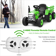 12V Kids Electric Tractor with Trailer and LED Lights - USB Compatible