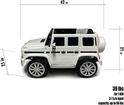 The 12V Licensed Mercedes Benz G63 Kids Ride On Car with Remote Control and Openable Doors is a unique and powerful ride-on car that will make your child the center of attention. With its real-looking and elegant design, this car is sure to impress. The 12V engine provides hours of uninterrupted driving, allowing your little one to enjoy all the special features of this battery-operated ride-on car. One of the unique features of this ride-on toy car is its operating system. It can be controlled either by the steering wheel and pedal or by the included remote controller, giving you and your child the option to choose the most convenient way to operate the car. But that's not all! This ride-on car also comes with special features that will keep your little one entertained for hours. With MP3 Music, Realistic Engine Sounds, and a Horn, your child can enjoy their favorite songs while cruising around in their very own electric car. Whether you're looking for a gift for your child or grandchild, this 12V Licensed Mercedes Benz G63 Kids Ride On Car is the perfect choice. It's a truly unforgettable present that will bring joy and excitement to any child. They will cherish this battery-powered ride-on car for a lifetime. Key Features: Real looking and elegant design Powerful 12V engine MP3 Music, Realistic Engine Sounds, and Horn Unique operating system with remote control Specifications: Color: White / Black / Red Material: PP Iron+ Electronic Components Net Weight: 40.7 lbs Battery: 12V4.5A X 1 Motor: 25W X 2 Suitable Age: 3-6 Years Loading Capacity: 77 lbs Product Size: 43.3"L X 27"W X 20.9"H Speed: 1.9-3.1 mph/h Charger/Use Time: Charger 8-12h, use 1-2h Charger: Input: 110V-240V Output:15 V DC: 1000mA Package includes: 1 X Kids Ride Truck 1 X Charger 1 X 2.4G Remote control 1 X Instruction Manual With its Power Rangers character family and suitable age level of 1-2 Years and 3-4 Years, this Mercedes-Benz ride-on car is perfect for young adventurers. Let your child's imagination run wild as they explore the world in their very own ride-on car.