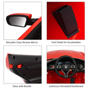 The 12V Maserati Ghibli Kids Ride-On Car in Red - Distressed Packaging Included is the perfect outdoor toy car for your child aged 3-6 years old. Made with premium environmentally friendly PP materials, this ride-on car is not only fun but also safe for your little one. With its upgraded durable wheels, it provides a comfortable and smooth ride. The safety seat belt ensures that your child is securely strapped in while they enjoy their adventure.This Maserati rc ride on car comes with a rechargeable 12V battery that offers two modes of operation. Your child can control the car using the steering wheel and pedal, or you can take control with the 2.4 GHz remote control. With a top speed of 3MPH, your child will have a thrilling ride every time. The bright front and rear LED lights add a touch of realism to the car, making it even more exciting for your little one.Not only does this ride-on car have a robust body, but it also features customized wheels and upgraded tires for extra shock absorption. The seat belts provide added safety, ensuring that your child stays secure during their ride. The premium sound system and music features will leave your child in awe, making their ride even more enjoyable.As parents, we understand that your child has a love for cars. That's why this Maserati ride-on car is the perfect gift for any occasion. It offers a true backyard driving experience that your child will look forward to every time they play outside. With its high-quality features, this ride-on car will create memories that your child will cherish for a lifetime.Key Features:- Officially licensed Maserati electric ride-on car- Drives on flat surfaces- Can be controlled by child via steering wheel and pedal or by parent with the 2.4 GHz remote controller- Music and horn function- Built-in MP3/USB port and TF card interface- Functioning front and rear lights- Comfortable seat with adjustable seat belt- Openable doors- Movable wing mirrorsProduct Specifications:- Brand: Unbranded- Material: Plastic- Dimensions: 41" x 21.5" x 17.5" (L x W x H)- Weight: About 30 lbs- Load capacity: 77 lbs- Speed: 3 - 4.5 KM/H- Battery: 12V 4.5 AH x 1- Charger: Input 110V - 120V, output DC 12V 700 MA- Charging time: 8 - 12 hours- Motors: 25W x 2- Remote control: 2.4 GHz- Remote control distance: 33 ft- Fuse: 10APackage Includes:- 1 x Ride-on car- 1 x Remote control- 1 x Charger- 1 x Rechargeable battery- 2 x Motor- 1 x Instruction manualLet your child's imagination run wild with the 12V Maserati Ghibli Kids Ride-On Car in Red - Distressed Packaging Included. Order now and give your child the ultimate ride-on car experience!