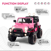 12V Pink Kids Ride on Truck with MP3, LED Light, RC, and Cover - Black