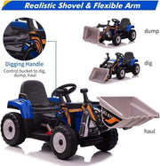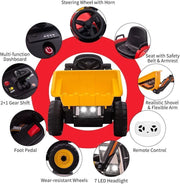 12V RC Excavator Ride-On Tractor with Music, Headlights, and Horn for Kids