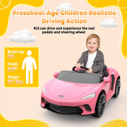 12V Sports Car for Kids with 2 Speeds, Parental Control, Sound Effects, and LED Lights