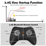 The 12V White Electric Kids Truck Car with MP3 and Remote Control is the perfect ride-on toy for your little adventurer. With its realistic and cool appearance, this toy car will capture your child's imagination and provide hours of fun. Whether controlled by the 2.4G Bluetooth remote control or operated by your child themselves, this rc ride on truck offers two modes for endless entertainment. One of the standout features of this ride-on truck is its slow start function, ensuring a safe and smooth driving experience. No need to worry about sudden acceleration or braking that might startle your child. Instead, they can enjoy a comfortable and secure driving experience with the spacious seat and safety belt. Not only does this ride-on truck look great, but it also includes LED lights that add to its realistic design. These lights are sure to attract attention and make your child feel like they're driving a real truck. Plus, the adjustable volume allows you to customize the sound experience to meet your child's preferences. When it comes to specifications, this ride-on truck doesn't disappoint. It measures 49" x 31" x 32" (L x W x H) and has a weight capacity of 66 lbs. The 12V 7AH battery provides plenty of power, and the truck can reach speeds of 3-6 km/h. With a charge time of 8-12 hours, your child will be back on the road in no time. Package includes: 1 x Kids Ride On Car 1 x 2.4G Bluetooth Remote Control 1 x Charger 2 x MP3 Cable 1 x Instruction Recommended for children aged 3-7 years old, this ride-on truck is the ultimate gift to encourage outdoor play and adventure. Say goodbye to excessive screen time and hello to endless fun with the 12V White Electric Kids Truck Car with MP3 and Remote Control. Get ready for your child to embark on exciting driving adventures!
