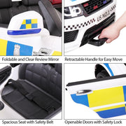 12V White Police Car Ride-On for Kids with Bluetooth Remote Control and LED Lights