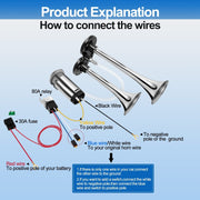 Rev Up Your Ride with the Ultimate Loud Air Horn Kit Imagine cruising down the open road, feeling the wind rush past you as you command attention with the thunderous roar of a high-powered air horn. Whether you’re driving a sleek car, a rugged truck, or even a boat, this chrome-zinc loud air horn kit transforms an ordinary commute into an exhilarating experience. You deserve a sound that cuts through traffic noise and alerts everyone around you with confidence—and that’s exactly what our complete air horn kit delivers. Why You’ll Love This Air Horn Kit This isn’t just any horn. It’s a statement. With up to 150 decibels of piercing sound, you’ll never worry about being overlooked at an intersection or hidden around a blind corner. The powerful compressor and elegantly crafted chrome zinc trumpets ensure that your signal is heard loud and clear, enhancing safety and adding a fierce edge to your vehicle. Plus, installation is a breeze, so you can spend less time under the hood and more time enjoying the open road. Key Benefits That Hit the Right Note Unmatched Loudness: At a staggering 150 decibels, your horn will cut through engine noise, honking horns, and busy traffic. You’ll command instant attention, boosting safety and preventing potential collisions. Durable Construction: Crafted from robust chrome zinc, the twin trumpets resist rust, deformation, and breakage. No matter the weather—rain, snow, or blazing sun—the horn maintains its thunderous performance. Complete, Ready-to-Use Kit: Included are two air horns, a powerful 12V compressor with reinforced coil, a high-capacity relay, and a full wire harness. Everything you need is in one box; no extra trips to the store. Easy Installation: You don’t need to be a professional mechanic. With clearly labeled components and straightforward wiring, you’ll have your horn up and sounding off in no time. Versatile Application: Ideal for cars, trucks, SUVs, boats, yachts, motorcycles, buses, and more. Whether you’re on land or water, this horn adapts to any ride, turning heads wherever you go. Long-Lasting Performance: Engineered to deliver over 100,000 blasts, the kit’s solenoid valve and rugged compressor ensure reliable operation, trip after trip. Detailed Specifications Material: Chrome-plated zinc for superior durability and rust resistance Voltage: 12V DC system (relay requires minimum 10A working current) Sound Output: Up to 150 decibels for maximum alertness Temperature Range: -40°F to 176°F operational range to withstand harsh environments Components Included: 2 x Chrome zinc trumpet horns 1 x High-pressure air compressor 1 x Heavy-duty relay (10A minimum) 1 x Complete wire harness with connectors Installation Made Simple Forget spending hours reading convoluted manuals. We’ve simplified every step so that you can bolt on this riveting horn kit in under an hour. The compressor mounts securely under your hood, the trumpets slide into place, and the wiring harness clicks ergonomically into place. Follow the color-coded wires to the relay, secure your ground, and you’re set. Before you know it, you’ll be ready to blast through traffic with a roar that echoes down the freeway. Enhance Safety and Confidence Every time you press the horn button, you’re not just making noise—you’re signaling your presence and asserting your right of way. This kit is more than a novelty; it’s a safety tool. Whether you’re navigating tight urban streets or winding country roads, you’ll feel a surge of confidence knowing you have the loudest, most reliable air horn available. Parents love it for the added layer of security, and adventurers appreciate the instant respect it commands on remote trails. Perfect Gift for the Gearhead in Your Life Holidays, birthdays, Father’s Day, or just because—you can’t go wrong with the gift of power. This air horn kit makes a memorable present for car enthusiasts, DIY mechanics, truck drivers, boat captains, and anyone who relishes turning heads. Packaged neatly in a sturdy box, it’s ready to wrap and gift, promising excitement from the minute it’s unboxed. Why Choose Our Loud Air Horn Kit? All-In-One Solution: Complete component set ensures you won’t have to hunt for missing parts. Premium Materials: Chrome zinc trumpets and a reinforced compressor guarantee longevity. Industrial-Grade Performance: The powerful coil inside the compressor delivers strong, consistent airflow for maximum volume. Vast Compatibility: Works seamlessly with any 12V vehicle—cars, trucks, boats, and beyond. Tested Tough: Rated for over 100,000 blasts in extreme temperatures from -40°F to 176°F. Get Ready to Be Heard! Are you tired of your horn being drowned out in traffic? Ready to upgrade your ride with an attention-grabbing roar? Our loud air horn kit is the answer you’ve been waiting for. With bulletproof construction, ear-splitting volume, and seamless installation, this kit turns your vehicle into a commanding presence on any road or waterway. Don’t settle for the ordinary—step up to extraordinary performance today. Order Now and Transform Your Drive Take control of every intersection and blind curve. Feel the thrill of instant respect from drivers and pedestrians alike. Equip your vehicle with the loudest, most reliable air horn kit on the market and enjoy peace of mind on every journey. Your new horn is ready to roar—are you?