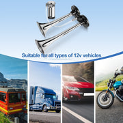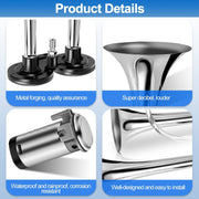 2-Pack 12V 150dB Loud Air Horn Kit for Trucks, Boats, and Cars with Air Compressor
