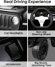 The 2-Seater 12V Electric Ride-On Truck Toy with Remote Control for Kids is the ultimate gift for your child who dreams of being a driver. This motorized SUV ride-on toy is packed with features that will provide endless entertainment, hands-on education, and safety. With a parental remote control, LED lights, Bluetooth connectivity, MP3 player, and a wider seat with an adjustable seat belt, this rc ride on truck seamlessly integrates fun and learning into a fantastic driving experience. One of the standout features of this ride-on truck is the soft-start technology, which prevents children from being frightened by sudden acceleration or braking. The 4 wear-resistant wheels are equipped with a spring suspension system, providing a safer and smoother driving experience for kids. Suitable for ages 3-7 years, this ride-on truck is the perfect gift to accompany your child's growth, enrich their lives, and guard their driving dream.Key Features:- Lifelike Driving Experience: This ride-on truck provides a realistic driving experience for toddlers. With features like one-button start, horn and engine sounds, real foot pedal acceleration, steering direction control, bright LED lights, and a rearview mirror, your child will feel like a real driver.- Two Driving Modes: Your child can operate the toy car independently using the steering wheel and pedals. For younger children, parents can use the 2.4G remote control to control the car and avoid any potential dangers. The remote control allows you to control the forward, backward, left, and right steering, with an emergency brake button and three-speed adjustment.- Happy Music, Happy Driving: The MOTION kids' car has a built-in music player and features USB/AUX ports and Bluetooth connectivity. Your child can enjoy their favorite music, songs, and nursery rhymes while driving, enhancing their driving pleasure.- Multi-Functional Operation: The toy car features a rich and interesting control panel, including an oversized color LED display that shows battery level, music volume, and speed mode. It also has a simulated car-style horn, music playback, volume adjustment, forward and reverse control keys, and a one-touch start button, providing unlimited driving fun.- Upgraded Configurations & Shock Absorption: This ride-on truck is equipped with a high-performance 30W*2 dual drive motor, providing dual driving force and sufficient power. The vehicle is also equipped with a spring suspension device, reducing road bumps and making driving more comfortable for children. The upgraded 12V 7Ah battery lasts longer than the common 4.5Ah battery, giving you more time to play with your kids.- Safety Assurance & Durability: Our kid's truck has passed ASTM F963 & CPSIA Children Product Certification, ensuring its safety and durability. It features a two-point safety belt and lockable double doors to prevent children from falling and improve safety. The shock-absorbing and anti-skid tires are wear-resistant and explosion-proof, providing a safer guarantee for children's driving pleasure.Specifications:- Color: Black- Recommended Age: 3-7 years- Material: PP and ABS plastic, metal- Battery Type: 12Volt 7AH- Motor Type: 30W *2- Maximum User Weight: 67 lbs (30 kg)- Maximum Speed: 3-5 km/h (3 mph)- Charging Time: 8-12 hr.- Run Time: 2-2.5 hours (depending on the child's weight and speed)- Music Function: AUX & USB port / Bluetooth / built-in music- Controller Batteries: 2 AAA batteries (not included)- Overall Size: 38.5 inches (L) x 23.5 inches (W) x 26 inches (H)With the 2-Seater 12V Electric Ride-On Truck Toy with Remote Control for Kids, your child will have a thrilling and educational driving experience. This ride-on truck is not just a toy, but a tool for your child to learn about the automotive mechanism and develop their driving skills. Its high-performance motor, safety features, and durable construction make it the perfect choice for young drivers. So why wait? Get your child this amazing ride-on truck and watch their driving dream come true!Note: Always keep an eye on your child when they are in the vehicle. The car does not function while charging, so please unplug the power cord if not in use for a long period.Package Includes: Ride on Car, 2.4G Remote Control, Charger, User ManualAdditional Specifications:- Brand: SEJOV- Year: 2023- Theme: Trucks- Age Level: 3-4 Years, 4-7- Character Family: CarsOrder the 2-Seater 12V Electric Ride-On Truck Toy with Remote Control for Kids today and give your child the gift of adventure and imagination!