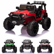 The 2-Seater 24V Electric Jeep for Kids with Remote Control and 2X200W Battery Power is the ultimate ride-on toy for adventurous children. With its powerful engine and realistic design, this electric car provides hours of thrilling fun. Whether controlled by parents or operated independently, this rc ride on truck car offers a variety of exciting features and specifications that will delight kids of all ages. Key Features: Two modes design - Parent-child remote control mode and steering wheel and pedal power mode Powerful 24V battery and traction tires for driving on different terrains Adjustable seat belts, bright LED headlights, lockable double doors, and impact-absorbing shock absorbers Built-in AUX outlet, Bluetooth connectivity, and USB port for connecting media devices Light-sensitive electronic auxiliary steering wheel for easy operation 24V 9AH large battery + 2 x 200W dual driving force for strong and consistent horsepower Product Specifications: Brand: Unbranded Year: 2023 Custom Bundle: No Theme: Cars Recommended Age Range: 3-11 Age Level: 3-4 Years, 4-7, 8-11 Years Modified Item: No Character Family: Kids Battery: 24V 9AH Motor: 2 x 200W Suitable age: 37-95 months Loading capacity: 35kg Product size: 123x88x80cm (48.4x34.6x31.5inch) Speed: 3-7 km/h Charge/Use time: charge 8-12h, use 1-2h Charger: 24V Remote control: AAA 1.5V Max-loading capacity: 35KG (77LBS) Suitable age: 37~95 Months Warning: The toy is to be assembled by an adult. In unassembled state, it may contain potentially hazardous sharp points, sharp edges, and small parts, so please keep it out of the baby's reach. Children must drive this product accompanied by adults. Not to be used in traffic. Be sure to read the operating instructions and warnings in the manual carefully.
