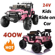 The 2-Seater 24V Kids Electric Car with 400W Power and 9AH Battery is the ultimate ride-on toy for adventurous kids. With its lifelike driving experience and powerful 24V 200W driving motors, this battery-powered truck will provide hours of fun and excitement. Whether your child is driving on a brick road, asphalt road, wood floor, or plastic runway, this ride-on truck can handle it all with its 14" large-sized wheels and all-metal suspension system. Designed with two spacious extended seats and enough cockpit space, this 2-seater ride-on car allows two kids aged 3-8 years to drive together, making it perfect for siblings or friends. Safety is a top priority, which is why this kids electric car is equipped with a safety belt and features a maximum user weight of 130lbs (60 kg). Parents can also take control of the car using the 2.4Ghz wireless remote control, ensuring the safety of their little ones. Not only does this ride-on car provide a realistic driving experience, but it also offers multiple functions for added fun. The high-bright LED headlights and searchlights make driving at night super cool, while the built-in music, MP3, USB port, and AUX port provide a great number of music and stories for your kids to enjoy. The ride-on car is also equipped with a photosensitive electronic auxiliary steering wheel, making it easier for your child to turn the steering wheel. When it comes to safety, this ride-on car has it all. It features bright headlights and taillights, a parent remote control, a 2-point comfortable seatbelt, 2 lockable car doors, a high chassis design, and 4 anti-skid wheels with all-metal shock absorbers. Made of high-quality non-toxic PP material, this ride-on car conforms to ASTM F963 & CPSIA Children Product Certification, ensuring the safety of your child. With its vibrant colors and sleek design, this 2-Seater 24V Kids Electric Car with 400W Power and 9AH Battery is sure to be a hit with kids and parents alike. Let your child's imagination run wild as they embark on exciting adventures in their very own ride-on car. Order yours today and watch your child's face light up with joy! Product Specifications: Color: Pink / Black / Green / Red Recommended Age: 3-8 years Material: PP and ABS plastic, metal Battery Type: 24Volt 8AH Motor Type: 200W * 2 Suspension: Full-Metal Suspension Seat Size: 17.8 inches Wheels Size: 14 inches Maximum User Weight: 130lbs (60 kg) Safe Speed: 3-7 km/h (4.5 mph) Charging Time: 8-12 hr. Run Time: 2-2.5 hours (depending on the child's weight and speed) Music Function: AUX & USB port / Bluetooth / MP3 / Built-in music Controller Batteries: 2 AAA batteries (not included) Overall Size: 48.5 inches (L) x 34.7 inches (W) x 31.5 inches (H) Key Features: Lifelike Driving Experience Powerful 24V 200W Driving Motors 2-Seater Kids Ride-on Truck Two Driving Modes Multiple Functions Ride for Fun Security Configuration Additional Specifications: Brand: Famous Year: 2023 Theme: Outdoor Age Level: 4-7, 8-11 Years Character Family: Family