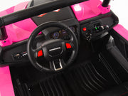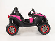 As seen on Nickelodeon TV, the UTV ride on Magic Cars* 2 seater ATV Buggy with leather seat provides your child with years of awesome fun! Science says a successful child learns early in life to dream big and work hard. There’s no better way for children to learn than by doing. Magic Cars* scaled down ride-on version of a real Quad UTV Truck is the perfect vehicle for kids to play and imagine getting tough jobs done. Now with real working doors and (4) motors. Perfect for children ages 1 –5 years old.Weight Capacity: 100 pounds.Maximum Speed of 5 mph. (4) 12V Motors.Easy to Operate.Kids can drive themselves, or parents can control.Extremely Durable.Choose your truck’s body paint color from Red, White, Blue, Black, or Pink. Magic Cars* brilliant features include working headlights, large all-terrain real rubber tires, huge 14” chrome wheels, storage trunk, shock absorber suspension, real working FM Stereo radio with speakers, audio input for your phone or tablet, or device, adjustable seat belt, cup/drink holders, foot pedal accelerator, Bluetooth enabled, and a real leather seat! Full function power steering allows your child to drive forward, backwards, left and right. Comes with dual 12 Volt rechargeable battery packs and a charger. The best part is Kids can drive themselves, or Parents can control with Magic Cars* Wireless Remote Control. For child/parental safety, Magic Cars* includes with every car purchase a remote-control unit equipped with wireless command switches. Whether you just want to have fun driving the vehicle with your child inside it, or for children too young to drive the vehicle themselves, right from your hand, your remote-control gives you full control of the car’s speed and movements going forward, backwards, making left or right turns and stopping. To allow your child to drive by themselves, press a switch located inside the vehicle and your child, as the driver, has full control over the wheels and pedal. It’s like getting two vehicles in one! Don’t be fooled by imitators. Only official Magic Cars* come with FREE “Best in Class” 1-year bumper to bumper warranty. Watch our official video to see how easy and how much fun it is to navigate and drive Magic Cars*. It’s no secret every dad who’s a car fanatic will wish he had one when he was a child.Educators say the best learning tools should be fun. Learning the basics of how to drive with Magic Cars* offers children hours of fun while teaching important spatial skills essential for kindergarten readiness. Kindergartners are expected to know how to follow directions and know where their body is in space. Playing at driving helps to build your child’s sense of position, direction, and movement. Learning crucial spatial developmental benefits along with strengthening hand-eye coordination is all part of the fun of driving Magic Cars.*Magic Cars* Battery Powered ATV Ride-On Quad Electric UTV Truck Specifications: Car Measurements: Length 50” Width 33” Height 29”Maximum Speed: 5 mphPerfect for 2 children ages 1 – 5 years old.Weight Capacity: 100 poundsEasy to Operate.Kids can drive themselves, or parents can controlExtremely DurableDual 12 Volt Rechargeable Battery Power Pack System Included 12V Charger IncludedFull function steering allows your child to drive forward, reverse, turn left and rightAvailable in Red, Blue, White, Green, or Pink.4 Wheel Drive. (1) Motor For Each WheelHuge 14” Chrome WheelsLarge All-Terrain Real Rubber TiresShock Absorber SuspensionReal Working HeadlightsWorking FM Stereo with Volume Control and Built-In SpeakerAudio Input for your Phone, Tablet, Devices. Bluetooth Enabled.Cup/Drink HolderReal Leather SeatAdjustable Seat BeltFoot Pedal AcceleratorStorage TrunkRealistic Sounds and LightsReal rubber tires with TreadReal working Front and Rear lightsArrives Mostly Assembled. Minor Assembly Required