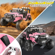 The 2-Seater Electric Ride-On Truck for Kids with Remote Control and Dual 200W Motors Are you looking for the perfect gift for your kids? Look no further than the Funcid Kid's Electric Car! This realistic and high-performance ride-on truck is designed for boys and girls with a spirit of adventure. With its double drive system and two spacious seats, it's the ultimate ride-on experience for kids. Parental Remote Control and Dual 200W Motors Comes with a 2.4Ghz R/C remote control with 3 speeds, allowing parents to control the car's movements Equipped with dual 200W motors for powerful driving ability Soft start function ensures safe acceleration and braking Maximum speed of 4.9mph in forward mode Safe and Fun Features Locking doors, foot pedals, and seat belts for added safety LED lights for a realistic driving experience Patented electron-assisted steering wheel for easier and safer driving Wheel auto return feature for enhanced comfort Wear-proof tires for durability Entertainment and Convenience Connect your kid's favorite soundtrack to the USB/Bluetooth/MP3 player for a fun driving experience One-button soft starting technology and switch for forward and reverse driving Spring suspension system for a smoother ride on various terrains Additional Specifications Color: Pink Recommended Age: 3-8 years Material: PP and ABS plastic, metal Battery Type: 24V 9AH Motor Type: 200W*2 Suspension: Full-Metal Suspension Seat Size: 18 inch Wheels Size: 14 inch Maximum User Weight: 130 lbs Safe Speed: 8-4.9 mph Charging Time: 8-12 hr Run Time: 100-120 mins Music Function: AUX & USB port / Bluetooth / MP3 / Built-in music Overall Size: 48.5 inch (L) x 34.7 inch (W) x 31.5 inch (H) With its safety features, powerful motors, and entertaining functions, the Funcid Kid's Electric Car is the ideal gift for your children's birthdays and holidays. Let them embark on exciting adventures with this 2-seater ride-on truck!