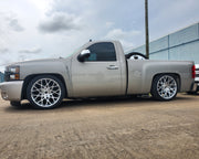 Slam your 2007-2013 Silverado 2wd with our 5/7 drop kit. Using the best in aftermarket suspension parts for a smooth ride and great alignment. We expertly combined the best brands for the best results in ride quality and looks! You can use 20s, 22s and 24" wheels. See below for tire recommendation. Works on 2wd trucks only.