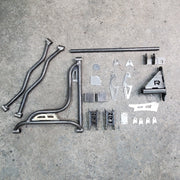 Kit Includes: Wishbone, Links, Front Wishbone Bracket, Link Brackets, Coil Over Brackets, bushings, bolts & crossbar with upper  mounts. Kit Ships in Raw Steel Finish.