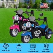 The 3-Wheel Chopper Motorbike Toy for Kids with LED Lights - Harley Motorcycle Inspired is the perfect gift for kids who love adventure and excitement. With its chopper-style design and vibrant colors, this 6V ride-on toy motorcycle is sure to capture the attention of young riders. Safety is a top priority, and this ride-on motorcycle features an ergonomic seat and realistic foot pedal to provide an authentic driving experience while ensuring driving safety. Made of environmentally friendly PP materials, this toy motorcycle is not only stable but also skin-friendly to touch.Equipped with a built-in real horn effect and LED headlights, this ride-on motorcycle adds to the fun and joy of the driving experience. The forward and backward button switches, along with the foot pedal for speed acceleration, allow kids to easily control and navigate their ride. The stable 3-wheel structure design provides balance and safety training, preventing the motorcycle from falling down in any circumstance. Rearview mirrors and a wind deflector are included for added realism and style. The premium wheels offer higher resistance and durability, making this ride-on motorcycle suitable for both indoor and outdoor use.Parents will appreciate the easy-to-ride and control design of this 3-wheel motorcycle. With a maximum speed of 2-3 MPH and a maximum load capacity of 55lbs, it is suitable for kids aged 3-6 years old. Let your kids create joyous childhood memories as they ride around on this exciting toy.Product Specifications:- Material: PP, Iron- Net Weight: 17.6 lbs- Weight Capacity: 55 lbs- Speed: 2-3 MPH- Recommended Age: 3-6 Years Old- Battery: DC 6V, 4.5AH- Charging Time: 12-18 hours- Headlights: 5mm LED colorful headlight*1, 5mm LED small white lights*2- Product Size: L95cm/37.4" x W50cm/19.69" x H63cm/24.8"- Package Size: L70cm/27.56" x W50cm/19.69" x H44cm/17.32"Key Features:- Chopper-style design with cool colors- Ergonomic seat and realistic foot pedal for an authentic driving experience- Made of environmentally friendly PP materials for stability and skin-friendly touch- Built-in real horn effect and LED headlights for added fun and excitement- Forward and backward button switches for easy control- Stable 3-wheel structure design for balance and safety training- Equipped with rearview mirrors and wind deflector- Premium wheels for higher resistance and durability- Easy to ride and control for toddlers and young children- Convenient charging design for long-lasting usePackage Includes:- 1 x Chopper Style Motorcycle- 1 x Charger- 1 x User ManualLet your kids embark on thrilling adventures with the 3-Wheel Chopper Motorbike Toy for Kids with LED Lights - Harley Motorcycle Inspired. Order now and watch as their imaginations soar!