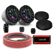 6.5" Loaded Flat Mount Speaker Pods with Amplifier, Installation Kit and Digital LED Lights, Package for Can-Am Spyder & Ryker