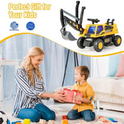 The 6V Battery Powered Kids Bulldozer with Front Digger Shovel - Brand New is an exciting ride-on toy that will provide kids with a realistic operating experience. It is designed with two operation modes, allowing for different types of fun. In the driving mode, kids can start to ride forward or backward by pressing the direction button and stepping on the foot pedal. However, in the digging mode, the drive function is disabled, and kids can freely control the shovel to dig anything they like by lifting the backrest.Safety is a top priority with this ride-on bulldozer. It is equipped with four non-slip and wear-resistant wheels, making it suitable for various surfaces such as cement roads, grass, boardwalks, and beaches. Additionally, it has overturn protection and a steering wheel with a horn, ensuring a safe and durable construction.The realistic design of this digger allows for exciting pretend play. Kids can adjust the height of the arm and the angle of the shovel, improving their eye-hand coordination. They can also rotate the excavator from side to side (30°) to dig. This ride-on excavator can move forward or backward, adding to the authenticity of the play experience.But the fun doesn't stop there! This ride-on bulldozer has rich functions to provide even more enjoyment. The control panel is equipped with a battery display, USB interference, microphone interference, and volume control buttons. It also offers early education and music functions, as well as wireless connection. The LED headlight emits colorful lighting, adding to the excitement.This toddler construction truck is the perfect gift for your kids. It is certified by ASTM and CPSIA, giving parents peace of mind. The wide and ergonomic seat features an under-seat storage compartment, allowing kids to bring their favorite toys along for the ride. Suitable for children aged 3 and above, this ride-on bulldozer will provide endless hours of fun and imaginative play.Key Features:- Driving Mode and Digging Mode- Safe and Durable Construction- Realistic Design for Digger Pretend Play- Rich Functions for More Fun- Perfect Gift for Your KidsAdditional Specifications:- Seat Size: 9" x 6"- Motor: 6V/DC x 1- Color: Black + Yellow- Material: PP + ABS- Age Level: 3-4 Years- Brand: GoPlus- Year: 2022- Weight Capacity: 55 lbs- Battery: 6V 4Ah x 1- ASTM Certificated: Yes- Theme: Trucks- Overall Dimension: 44.5" x 17" x 15.5"- Recommended Age Range: 3+ years old- Charger: Output 6V 0.5A- Net Weight: 13 lbs- Character Family: BulldozerThis ride-on bulldozer is suitable for both indoor and outdoor use. It is ideal for digger pretend play with sand or soil, allowing kids to create their own construction sites and engage in imaginative play. With its sturdy construction, realistic design, and rich features, the 6V Battery Powered Kids Bulldozer with Front Digger Shovel - Brand New is sure to provide endless fun and excitement for your little ones.