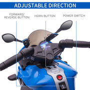 The 6V Battery Powered Ride-On Motorcycle for Kids with Training Wheels and Headlight is the perfect toy for any young automotive enthusiast. With its comfortable seat, two handlebars, and electric pedal, this ride-on motorcycle provides an exciting and adventurous experience for kids. The two training wheels on the back wheel ensure balance and stability, making it ideal for first-time drivers. Not only will children have a blast riding this motorcycle, but they will also develop important motor skills and hand-eye coordination.This electric ride-on motorcycle features working headlights, adding a realistic touch to the driving experience. The electric pedal makes it easy for young children to operate, and the package includes a rechargeable battery and charger for convenience. Once fully charged, the motorcycle can provide up to 45 minutes of continuous playtime, allowing kids to enjoy extended rides.The two wide tires with training wheels provide a stable and smooth riding experience, ensuring that children can ride with confidence. This ride-on motorcycle is recommended for children ages 18-48 months, making it suitable for a wide range of young riders. It is also certified by ASTM F963 and CPSIA, ensuring its safety and quality.In terms of specifications, this ride-on motorcycle is available in blue and black colors. It is made of durable PP and steel materials, guaranteeing its longevity. The overall dimensions of the motorcycle are 35.5"L x 16.5"W x 22.75"H, and the seat size is 11"L x 6.75"W x 10.75"H (from the ground). The wheel size is ?5.5". The charging time for the battery is 10-12 hours for the first time and 10 hours for subsequent charges. Once fully charged, the motorcycle can provide 45 minutes of continuous playtime. The motor is 6V, and the weight capacity is 55lbs. This ride-on motorcycle is suitable for kids aged 18-48 months.Please note that adult supervision is required when using this item.Specifications:- Color: Blue, Black- Material: PP, Steel- Overall dimension: 35.5"L x 16.5"W x 22.75"H- Seat size: 11"L x 6.75"W x 10.75"H (from the ground)- Wheel size: ?5.5"- Charging time: 10-12 hours (first time), 10 hours (normal)- Continues play time (fully charged): 45 mins- Motor: 6V- Suitable for kids 18-48 months- Weight capacity: 55lbsKey Features:- Working headlights for a realistic driving experience- Electric pedal for easy operation by first-time drivers- Rechargeable battery and charger included in the package- 45-minute drive time once fully charged- Two wide tires with training wheels for stability and smooth riding- Recommended for children ages 18-48 months- Develops hand-eye coordination- Certification: ASTM F963, CPSIAThe 6V Battery Powered Ride-On Motorcycle for Kids with Training Wheels and Headlight is a thrilling and safe toy that will provide hours of entertainment for young children. Get ready for an adventure-filled ride with this exciting ride-on motorcycle.
