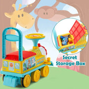 This multifunctional ride-on toy is packed with exciting features. Realistic train whistles and colorful lights add to the fun and adventure. The retractable foot pedals provide comfortable driving, and the hidden box under the seat offers extra storage space for toys, snacks, and more.