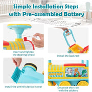 Assembly is a breeze with this ride-on train. The battery is already installed, so all you need to do is follow a few simple steps to set it up. Once assembled, your child can personalize the train with stickers and embark on a joyful train journey.