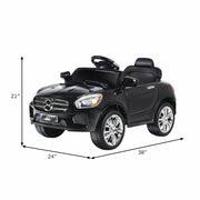 The 6V Kids Ride On Car with RC Remote Control, Battery Powered Toy with LED Lights is not just a car, it's a whole new world of adventure for your little ones. With its sleek and modern design, this ride-on car is perfect for outdoor play. Let your kids explore the neighborhood in style with this high-quality, black-colored remote control ride on car.Key Features:- High-quality construction ensures durability and long-lasting use- LED lights add a touch of excitement and make the car more visible during playtime- Movable door gives your children the feeling of being in a real car- MP3 aux allows your kids to enjoy their favorite tunes while riding- Remote control feature allows you to take control when neededProduct Specifications:- Brand: COSTWAY- Color: Black- Material: Plastic- Size: 24" (L) x 38" (W) x 21" (H)- Type: Ride On Car- Style: Modern- Power Source: Battery- Weight: 23lbs- Assembly Required: Yes- Firmness: Firm- Number of Items in Set: One-Piece- Assembly Status: Assembly Required- Department: Kids- Indoor/Outdoor: OutdoorLet your kids embark on thrilling adventures with the 6V Kids Ride On Car with RC Remote Control. Its high-quality construction ensures that it can withstand all the bumps and turns of the road. The LED lights not only make the car look cool but also provide added safety during playtime. The movable door adds a realistic touch, making your children feel like they're driving a real car. With the MP3 aux, your kids can listen to their favorite songs while cruising around. And when you need to take control, the remote control feature allows you to steer the car with ease.Assembly is required for this ride-on car, but don't worry, it's easy and straightforward. The firmness of the car ensures a stable and comfortable ride for your little ones. Whether they're playing in the backyard or exploring the park, this ride-on car is perfect for outdoor adventures.Give your kids the gift of endless fun and excitement with the 6V Kids Ride On Car with RC Remote Control. Let their imaginations run wild as they zoom around in their very own car. Order now and watch their faces light up with joy!