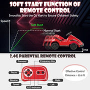 The 6V Kids Ride On Go Kart with Remote Control and Safety Belt - Toddler Driving Car Toy is the perfect choice for your adventurous little ones. This remote control ride on go kart is designed with both manual and remote control operation, providing your child with the freedom to drive on their own or allowing you to take control when needed. The 2.4G parent remote control allows you to move the go kart forward, backward, and turn it left or right, giving you peace of mind knowing that you can guide your child's ride.To make the driving experience even more exciting, we have included a fun steering wheel and control panel. Your child can enjoy music and sound effects with the multifunctional control panel and steering wheel. With a USB port, you can connect external devices for even more music options. Your child can play, pause, increase or decrease the volume of the music, adding to the fun and entertainment.Safety is our top priority, which is why we have incorporated a slow start function in the remote control. This ensures a smooth and gradual acceleration, preventing any sudden movements that may startle your child. The adjustable safety belt and soft bumper provide additional safety protection, keeping your child secure while they ride. The spacious seat and safe backrest prevent your child from leaning back, ensuring a comfortable and safe ride. The seat can hold up to 66 lbs, accommodating children from 37 to 96 months old.The 6V battery and strong motor guarantee a safe speed of 2 mph, offering your child an unforgettable riding experience. The four durable and wear-resistant wheels make this go kart suitable for various road conditions, including wood floors, cement roads, and brick roads. Your child can explore different terrains with ease, enhancing their imagination and creativity.This go kart is the perfect gift for your toddlers. Its cool appearance and child-friendly materials make it suitable for children aged 37 to 96 months. The go kart requires 8-12 hours of charging time and provides long playing time for your child's enjoyment. With this go kart, your child can develop their strength, endurance, and coordination while having a blast.Why Buy Our Item?- Convenient steering wheel and foot pedal for kids to steer and accelerate- 2.4G remote control helps parents to better control the vehicle- Extra music and sound effects for kids to acquire more fun- Remote control with slow start function adds more security- Adjustable safety belt and soft bumper for better safety protection- Spacious seat with backrest for kids seating comfort- Built-in 6V battery and strong motor to reach a speed of 2 mph- 4 durable and wear-resistant wheels help kids to drive on wood floors, cement roads, brick roads, and more- Premium PP and steel material for high durability and stability- ASTM and CPSIA certification for additional security- Able to enhance kids' strength, endurance, and coordinationSpecifications:- Color: Red- Material: Steel, PP, PVC- Product Dimensions: 33.5" x 21" x 15.7" (L x W x H)- Net Weight: 15.4 lbs- Brand: Costway- Theme: Cars- Recommended Age Range: 3+- Age Level: 3-4 Years, 4-7