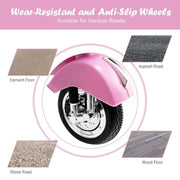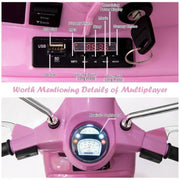 The 6V Vespa Scooter Motorcycle for Kids with Training Wheels and Headlight is the perfect ride-on toy for adventurous children. With its realistic features and attention to safety, this electric scooter will provide hours of fun and excitement. Designed with a real key, this electric scooter offers a safe and realistic driving experience. The music and lighting effects add an extra level of fun and authenticity to the ride. Equipped with rearview mirrors on both sides, children can truly see the rear situations, enhancing their sense of driving. Safety is a top priority with this electric motorcycle. Made of premium iron parts and new PP material, it ensures reliability, durability, and strong weight capacity. The design of the training wheels on both sides adds balance and stability, allowing children to ride with confidence. The anti-skid wheels provide additional safety by effectively avoiding the risk of turning over when riding. This ride-on toy offers multifunctional features for simple driving. With smooth forward and backward functions, kids can change directions at will and drive more easily. The comfortable handles are convenient to hold the balance and let kids ride more smoothly. Simple assembly helps children quickly master the riding skills. The 6V Vespa Scooter Motorcycle for Kids is powered by a rechargeable 4.5Ah battery. It comes with a safety-certified low energy charger, allowing for a quick and full charge. The lightweight design makes it convenient to carry outdoors and fully enjoy the fun of riding. Equipped with a USB interface, this motorcycle can be connected to MP3 and other devices, allowing kids to exercise their thinking ability while riding. It also helps improve their balance. Whether it's Christmas or a birthday, this ride-on toy is the perfect gift choice for kids. Why Buy Our Item:- Not for sale in California- Forward/backward function enables kids to ride as per their preference- Training wheels stabilize the motorcycle for higher stability during driving- Wide seat provides a comfortable driving experience- Rechargeable design helps kids drive with less required effort- Suitable for indoor or outdoor use, on different kinds of grounds- Bright headlights and tail-lights bring added fun to driving- Interesting stories and music make driving more enjoyable- MP3 port, USB slot, and SD slot offer a great number of music options- Adjustable volume meets different requirements- ASTM certification shows great safety and reliability- Perfect gift for both boys and girls, creating happy childhood memoriesSpecifications:- Color: Pink- Material: Iron, PP- Dimension: 42" x 19.5" x 32.5" (L x W x H)- Net weight: 21.5 lbs- Weight capacity: 55 lbs- Battery: 6V, 4.5Ah- Charger input: 100-240V, 50/60HZ- Charger output: 7.8V, 500mA- Charging time: 8-12 hours- Recommended age: 37-95 MonthsWith its realistic features, safety measures, and exciting functionalities, the 6V Vespa Scooter Motorcycle for Kids with Training Wheels and Headlight is the ultimate ride-on toy for young adventurers. Get ready for endless fun and unforgettable childhood memories with this amazing ride-on scooter.