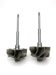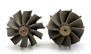 On the left in the photo is the stock 7.3 turbine wheel, it is much less efficient and is an outdated design.