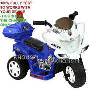 Revitalize Every Ride with the Ultimate 6V Ride-On Charger You’ve watched your little one zooming around the driveway in their Kid Motorz Little Patrol Police ride-on motorcycle, felt their giggles as they patrolled the backyard, and marveled at how fast they can go on that three-wheel bike. But sooner or later, every thrilling excursion needs a pit stop to recharge. That’s where our premium 6V AC adapter charger comes in—designed specifically for your child’s ride-on ride to keep the adventure rolling day after day. Why You Need This Charger for Your Ride-On Toy Imagine it: your child is geared up to transform the living room into a patrol zone. The sirens are primed, the lights are flashing, and your future officer is ready to roll. Then, disaster strikes—the battery indicator dips low, the ride-on slows, and playtime screeches to a halt. With this genuine wall charger, you’ll never have to witness that letdown again. Simply plug in the 8-foot cord, and in just a few hours, the power returns, ready to fuel another round of high-speed chases around the kitchen table. Designed for Kid Motorz Little Patrol Police Motorcycle This charger is tailor-made for the National Products Kid Motorz Little Patrol Police 3-Wheel Bike, featuring a precise 6V output that matches your ride-on’s battery requirements perfectly. Forget about generic cables that underdeliver or risk damaging the battery—this adapter delivers stable, consistent power to preserve the life of your power pack while ensuring maximum safety. Key Features & Specifications Optimized 6V Output: Delivers the exact voltage needed for the Kid Motorz Little Patrol Police ride-on motorcycle, ensuring efficient and safe charging every time. 8-Foot Heavy-Duty Cable: Extra-long length gives you the freedom to charge from any wall outlet without hauling the ride-on too close to the power source. Perfect for garages, playrooms, and living areas. Smart Fuse Protection: Built-in smart fuse guards against power surges, overvoltage, and short circuits, keeping both the adapter and the battery safe throughout the charging cycle. Battery-Saving Mode: Special circuitry helps preserve battery health by preventing overcharging. You can leave the charger connected overnight without worrying about damage. Wide Battery Compatibility: Compatible with Ni-Cd, Ni-Mh, and Li-Ion rechargeable batteries, making this adapter a versatile choice for multiple ride-on toys in your collection. Universal AC Wall Plug: Fits standard home outlets in the U.S., so you won’t need any extra converters or power strips. Just plug it in and go. Benefits That Drive Playtime Every feature of this charger translates into a real benefit for you and your family: Hassle-Free Charging: The long 8-foot cord means you can keep the ride-on parked in your child’s favorite spot and reach any outlet without moving furniture. Extended Battery Life: The smart fuse and battery-saving mode work together to protect your battery from stress, extending its overall lifespan so you get more play sessions before needing a replacement. Plug-and-Play Convenience: No complicated setup or programming. Simply connect the adapter to the ride-on’s charging port under the seat, plug into the wall, and watch the indicator light come on. Safety First: With built-in surge protection and strict adherence to safety standards, you can feel confident that your child’s charger meets all the necessary precautions. Perfect for Busy Parents and Gift-Givers As a parent, you juggle countless responsibilities—from school runs and bedtime routines to endless meal prep. The last thing you need is to troubleshoot a finicky ride-on charger. Our reliable adapter gives you peace of mind with every use, so you can cross “fixing the battery” off your to-do list. And if you’re hunting for the ideal gift for a special child, you can’t go wrong with an accessory that keeps the fun alive at full throttle. Seamless Integration with Your Backyard Patrol Fleet If your little one has multiple ride-on toys—maybe a lightning-fast ride-on car or a sturdy play truck—this adapter’s universal design makes it a versatile addition. Although it’s engineered for the Kid Motorz Little Patrol Police bike, its compatibility with various rechargeable battery chemistries means you can use it to maintain batteries in other ride-on vehicles. One adapter, endless possibilities! Installation Instructions Locate the charging port under the seat of the Kid Motorz Little Patrol Police motorcycle. Insert the adapter plug firmly into the port until you feel a snug connection. Plug the AC wall prongs into any standard U.S. outlet within reach of the 8-foot cable. Check the LED indicator on the adapter. A solid light signals that charging is in progress. Allow 8–12 hours for a full charge, depending on battery level. Unplug when finished or leave connected for battery-saving maintenance. Why Our Charger Stands Out With so many after-market options, choosing the right charger can feel overwhelming. Here’s why parents prefer ours: Precision Engineering: Designed exclusively for the Kid Motorz Police motorcycle to guarantee a perfect fit and safe power delivery. Premium Components: High-grade wiring, secure connectors, and an advanced fuse system ensure longevity and reliability. Customer-Centric Design: The extra-long cable, simple plug-in setup, and clear LED indicators are all features born from real parental feedback. Dedicated Support: Even though all you need is in the box, our team is ready to answer any questions you have about installation or charging protocols. Keep the Patrol Rolling—Order Your Charger Today! Don’t let a drained battery derail your child’s next expedition. This ride-on charger is the lifesaver every parent needs to maintain the thrill of the Kid Motorz Little Patrol Police motorcycle. With its robust safety features, versatile compatibility, and user-friendly design, it’s the ultimate 
