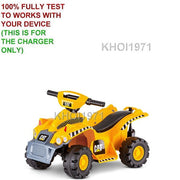 Power Up Your Kid’s Adventure with the Ultimate AC Adapter Charger Imagine your little one tearing across the backyard on their favorite CAT Toddler Quad ride-on, the wind in their hair, laughter following every twist and turn. Now picture that sparkle in their eyes fading because the battery is running low. With our custom-made AC adapter charger for KT1153, KT1153TG, KT1153TR, and KT1153WM models, you’ll never have to pause the excitement. This reliable wall charger delivers consistent, safe, and smart charging every time, so your child can hop back into their ride-on adventure without a hitch. An Adventure-Ready Charger for Every Model This versatile charger is compatible with a wide lineup of Kid Trax CAT Toddler Quad ride-ons. Whether your quad is decked out in bright yellow with a sleek black seat or features one of our special edition color schemes, this AC adapter is designed to fit seamlessly. Here are the specific models that enjoy perfect compatibility: KT1153 – The classic CAT Toddler Quad that started it all KT1153TG – Tiger-Green edition for bold explorers KT1153TR – Turbo-Red design for speed lovers KT1153WM – Winter-White model for snowy expeditions Smart Charging Technology—Built for Safety and Efficiency Every feature of this AC adapter is engineered to keep your child safe and to extend the life of their ride-on vehicle’s battery. Here’s how we make sure each charging cycle is as efficient and worry-free as possible: Smart Fuse Protection: An integrated smart fuse guards against power surges, preventing damage to both the battery and the charger itself. You can rest assured that unexpected spikes in voltage won’t harm your investment or your ride-on truck. Battery-Friendly Charging: With advanced circuitry, this adapter optimizes charging speed while preventing overcharging. The result is a longer-lasting battery that holds its charge, ensuring your little driver spends more time on the track and less time waiting by the wall socket. Compatibility with Modern Battery Types: Whether your quad uses Ni-Cd, Ni-Mh, or Li-Ion cells, our charger handles them all. One universal solution for various battery chemistries means fewer adapters cluttering your home and fewer compatibility worries for you. Plug In, Charge Up, and Get Back to Play Using this AC adapter is as easy as 1-2-3: Locate the charging port on your KT1153-series ride-on. Insert the adapter plug securely into the port—no twisting or forcing required. Connect the charger to any standard household wall outlet, and watch the indicator light turn on. Within a few hours, your child’s car, truck, or quad is powered up and ready for another round of imaginative adventures. No special skills are needed—just plug in, leave it to charge, and unplug when complete. Why Parents Love This Charger We know that as a parent or gift-giver, your goal is to keep the fun going while ensuring safety and reliability. Here’s why our AC adapter stands out: Durable, Kid-Proof Design: Sturdy construction resists bending, twisting, and accidental tugs that happen when curious little hands are around. No-Fuss Operation: A single LED indicator light lets you know exactly when charging has started and when it’s done—no guessing or peeking inside the unit. Compact and Portable: The streamlined design makes storage a breeze. Slip it into a drawer, place it in a toy box, or tuck it in the garage without taking up precious space. Peace of Mind: Built-in safeguards ensure that overcharging, overheating, or power surges won’t put your child or their ride-on at risk. Imaginative Play Meets Reliable Power Your child’s imagination transforms every ride-on journey into a grand expedition—whether navigating rocky terrain in a mini truck, patrolling the neighborhood in their colorful car, or conquering backyard hills on the CAT Toddler Quad. This AC adapter charger makes sure the energy never runs out on their playtime. It’s the silent hero behind every giggle, every victory lap, and every moment of unfiltered joy. Specifications at a Glance Input Voltage: 120V AC (standard household current) Output Voltage: 6V DC (optimized for KT1153-series batteries) Output Current: 1.2A – balances quick charging with battery longevity Charging Cable Length: 4 feet – reaches easily from wall outlet to ride-on port Compatibility: Ni-Cd, Ni-Mh, Li-Ion battery chemistries Safety Features: Smart fuse, overcurrent protection, short-circuit prevention Get Back to the Fun Faster Every moment counts when it comes to your child’s playtime. Don’t let battery hassles cut the adventure short—equip your Kid Trax CAT Toddler Quad, car, or truck with the AC adapter charger that parents trust. Within hours, the ride-on is humming with power, ready for another fearless exploration of driveways, sidewalks, and backyard racetracks. Enhance every ride-on journey with a charger that’s as dependable as it is easy to use. Order your custom AC adapter today and discover the freedom of uninterrupted play!