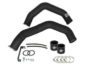 Français : Ajustement parfait : comprend des colliers de serrage en acier inoxydable pour une étanchéité sans fuite et un raccord en silicone renforcé à 5 plis pour plus de résistance. Tube cintré au mandrin : fabriqué en tube d'aluminium cintré au mandrin de 2-1/4" pour un débit maximal, puis revêtu de poudre pour une belle finition. Le revêtement en poudre haute température isole également les tubes de la chaleur du moteur et les protège de la corrosion. Les courbes de transition en douceur réduisent les turbulences, minimisent la perte de pression, tout en augmentant la puissance et le couple. Ces tubes sont également équipés d'un adaptateur de style usine en aluminium billette qui se scelle avec un joint torique. Un port NPT de 1/8" qui est fourni sur chaque tube pour un capteur ou une injection d'eau-méthanol. Badge aFe : la plaque de logo aFe Power unique en aluminium découpée au laser est soudée pour un style agressif.