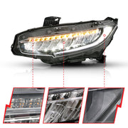 Phares de projecteur ANZO 16-17 Honda Civic Style Plank Noir avec clignotant ambre/séquentiel