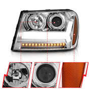 Phares de projecteur ANZO 2006-2009 Chevrolet Trailblazer avec design de style planche Chrome avec ambre