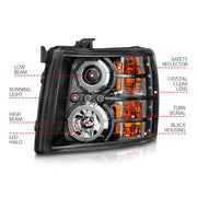 Phares de projecteur ANZO 2007-2013 Chevrolet Silverado 1500 avec halo noir