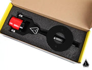 The Assault Industries F-22 belt replacement tool for Can Am Maverick X3 is used to release the tension of the clutch so that the belt can be removed and reinstalled quickly. The tool is CNC machined from billet aluminum, hard anodized black and finished with post-machined and laser engraved Assault Industries markings.