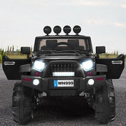 The Black 12V Kids Ride On Truck with Remote Control and Double Magnetic Door Introducing the Black 12V Kids Ride On Truck with Remote Control and Double Magnetic Door, a thrilling and adventurous ride-on car that will bring endless joy to your little ones. With its sleek black design, this ride-on truck is perfect for children aged 3-7 years old. Key Features: Color: Black Material: PP Iron Overall dimensions: 49" x 31" x 32" (L x W x H) Net weight: 48 lbs Weight capacity: 66 lbs Speed: 3-6 km/h Charge time: 8-12 hours Battery: 12V 7AH Recommended for ages: 3-7 years old Product Specifications: 2 powerful drive motors to reach 3-6 km/h speed PP material and metal frame to ensure sturdiness and durability Equipped with AUX input, USB port, and TF card slot to connect external devices 2.4G remote control mode (3 adjustable speeds) & battery operation mode Slow start function for gradual acceleration and reliable braking Spacious seat with multi-point safety belt for sitting and playing Luxury appearance, bright LED lights, and horn sound to attract baby 4 explosion-proof wheels with spring suspension for long-time use Forward & reverse shifter and steering wheel for kids to operate easily Trunk to store toys, snacks, etc Retractable handle for easy-to-move and transport Doors with magnetic locks can be opened for added fun and convenience One-button start design for enough convenience Additional Specification: Brand: Unbranded