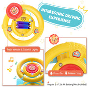 Safety is a top priority with this ride-on train. It features a backrest and anti-tilt device to prevent unexpected rollovers, ensuring a safe and smooth riding experience. The train also comes with bright lights and sounds, adding to the fun and excitement. The steering wheel requires 2 x 1.5V AA batteries (not included) to operate.