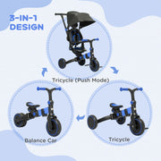 Blue Qaba Toddler Tricycle with Adjustable Push Handle and Durable Aluminum Frame