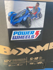 The Brand New Power Wheels Boomerang Blue - Available for Local Pickup in 92865 The Power Wheels Boomerang Blue is a young racer's dream come true. This ride-on vehicle allows kids to experience the thrill of tilting and spinning into awesome, fully controlled drifts. With its large wheels, the Boomerang can easily navigate over different terrains, making it perfect for outdoor adventures. Key Features: Kid-controlled power drift mode Tilting action while turning for exciting driving experience All-wheel drive with dynamic traction control for powering over hard surfaces, grass, and rough terrain Power-Lock brakes for safe and controlled stops Drives up to 5 mph in forward and up to 2.5 mph in reverse Smart Drive system for improved driving performance Advanced stability control to keep all three wheels on the ground Battery life indicator for easy monitoring High sides for secure turns Adjustable seat with a seat belt for added security and comfort Product Specifications: Character Family: Power Wheels Age Level: 4-7, 8-11 Years Brand: Power Wheels Theme: Cars Maximum Weight Capacity: 100 lbs The Power Wheels Boomerang Blue includes a 12V battery and charger, ensuring your young driver can enjoy hours of fun. This ride-on car is designed for children aged 5-10 years, providing them with a thrilling and safe adventure. Get ready to hit the road with the Brand New Power Wheels Boomerang Blue!