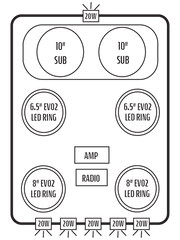 • Customizable Audio Options: Three levels of high-performance speakers and radios to choose from and multiple amplifier options as well as the ability to add up to two 10” subwoofers for a heart-thumping experience