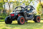 Experience the thrill of adventure with the Can-Am ride on side by side, a ride-on that brings the excitement of the Dakar Rally right to the hands of young adventurers! Crafted for children aged 2 to 10 years old, this officially licensed 2-seater ride-on is equipped with premium features like luxurious leather seats, and a convenient Magic Cars parent remote control. We understand that the joy of exploration knows no bounds ensuring uninterrupted excitement on those long trails. Designed to tackle terrain with confidence. Plus, rest assured that spare parts for these units are readily available, ensuring continuous playtime fun. Captivating Features: 24V Can-Am Ride-On Side By Side Drive using the steering wheel or remotely by an adult Choose from 3 forward speeds using the remote (Approximately 2.5 to 7 MPH) Effortless reverse function Realistic locking doors for an authentic driving experience Functioning front and rear lights for added safety and excitement Driver and passenger safety assured with 3-point adjustable seat belts Individually designed leather seats in a sleek black with gray trim Adjustable driver's seat for a customized driving experience Designed to accommodate 1 or 2 children aged 2-10 years Impressive weight capacity of up to 135 lbs Push-button start accompanied by thrilling start-up sounds Integrated media player featuring a radio and MP3/USB/TF ports for music Clear voltage display for monitoring battery power Smooth rides ensured by 14" EVA Wheels and Rear Spring Suspension Technical Specifications: Battery: (2) 24V battery for prolonged play 4WD Drive Gearboxes Speed: 3 Speeds (Approximately 2.5 to 7 MPH) with three remote-controlled speeds Convenient 2.4GHz Magic Cars remote control for parent supervision Dimensions: 57"L x 24" Wide Comes with a reliable 110V Wall Charger for hassle-free charging Experience the epitome of youthful adventure with the 24V Can-Am side by side. This exhilarating ride-on is not just a toy; it's an avenue for cultivating a love for exploration and embracing the thrill of the open road. Prepare your young explorers for the journey ahead with a ride that combines safety, style, and excitement in one unforgettable package. Don’t be fooled by imitators. Only official Magic Cars® come with FREE “Best in Class” 1-year bumper to bumper warranty.