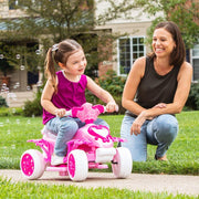 The Disney Princess Electric Ride-On Quad with Bubble Action Exhaust in Pink by Huffy is the perfect ride-on toy for your little princess. This 6V ride-on is designed for children aged 1.5 to 3 years and features a foot throttle for easy start-up. As soon as your child presses down on the throttle, the adventure begins!