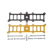 Le kit d'entretoises Edelbrock #8727 comprend une entretoise de 7/16" d'épaisseur et deux joints de 0,045" d'épaisseur pour une épaisseur totale de 1/2". Le kit comprend également de nouvelles fixations de base à supérieure pour accueillir l'entretoise. Le kit présente plusieurs avantages. Tout d'abord, il surélève le collecteur supérieur de 1/2" pour augmenter le jeu entre le couvercle de soupape et le plénum supérieur. Cela est nécessaire pour utiliser un couvercle plus haut, par exemple lorsque des culbuteurs à galet sont utilisés. Il fournit également une isolation thermique entre les collecteurs inférieur et supérieur. Comme troisième avantage, la longueur supplémentaire de 1/2" du canal permet de produire plus de couple. Convient à tous les collecteurs basés sur Performer 5.0 PN 3821 et PN7126.